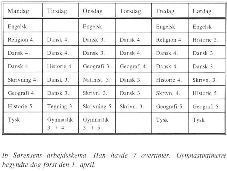 Da der kun fandtes 2 klasselokaler på den store skole, kunne ikke alle 3 klasser gå i skole hver dag, men måtte skiftes.