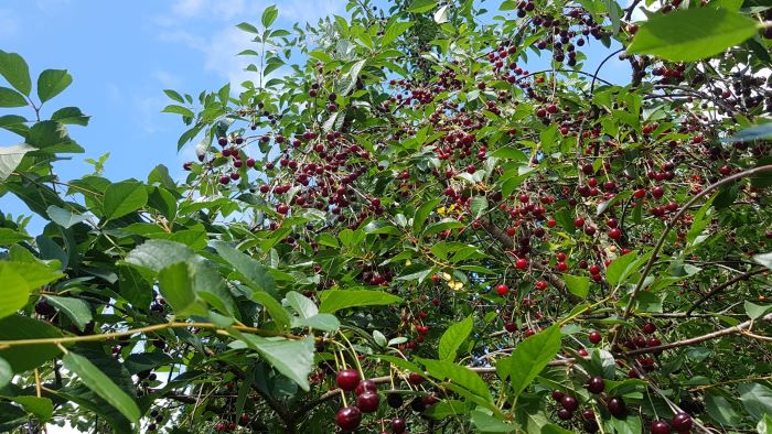 Den lokale sort af surkirsebær eller brunkirsebær (prunus cerasus) er mindre end sødkirsebær og mere egnede til forarbejdning, da de ikke er særligt søde med tilgengæld smager af mere.